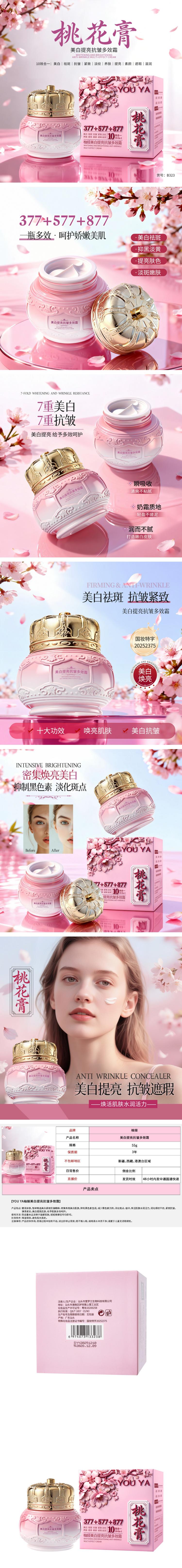 【包邮】美白抗皱桃花膏美容养颜霜55g