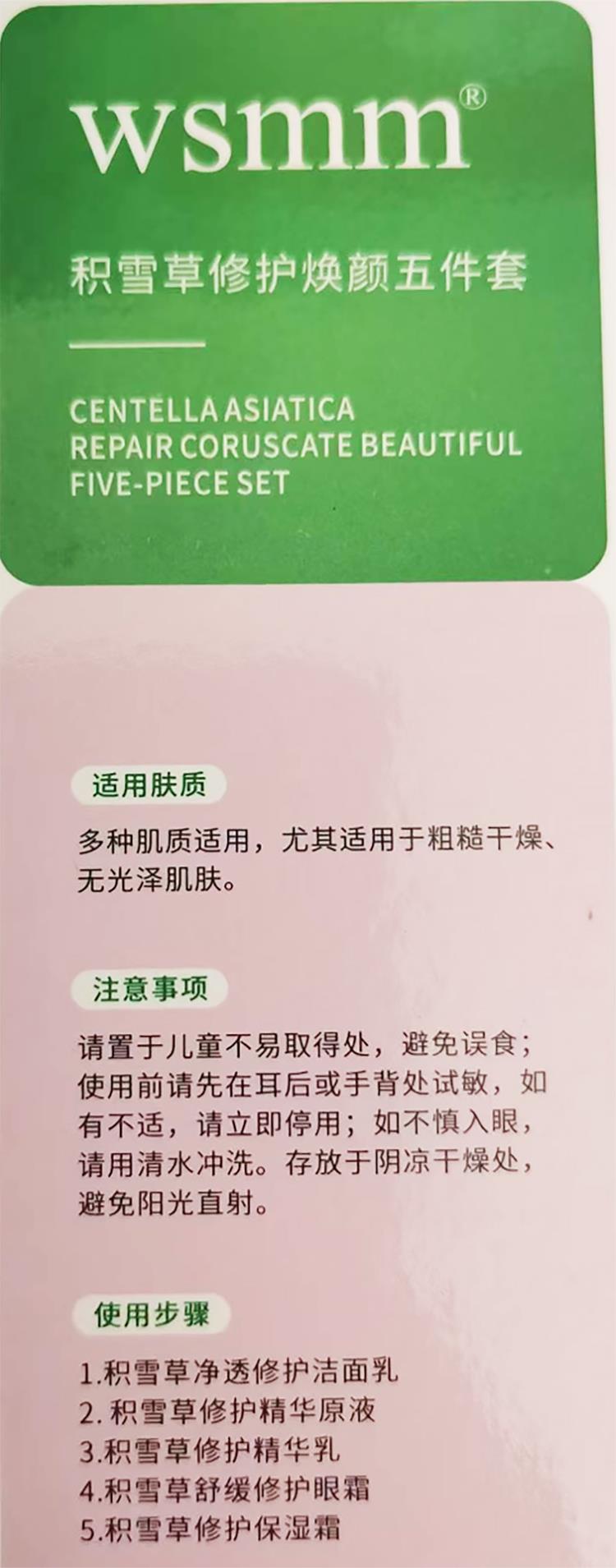 【包邮】WSMM 积雪草修护焕颜五件套 深层滋养改善粗糙干燥 肌肤焕亮就靠它