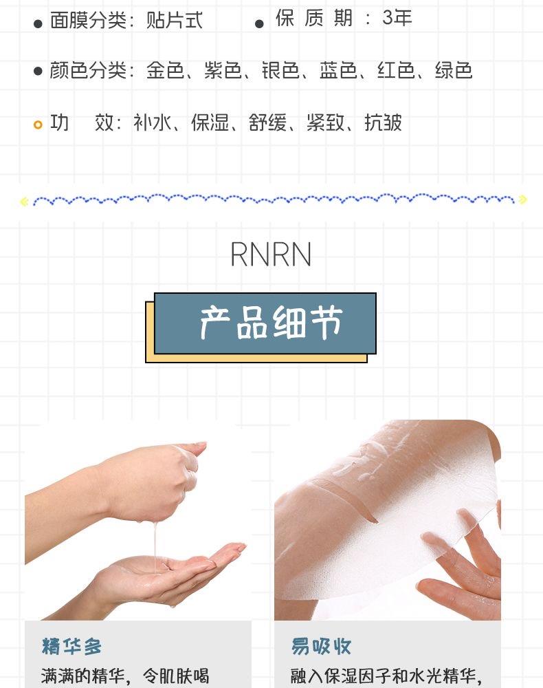 泰国RNRN蚕丝蛋白面膜保湿补水升级版童颜面膜挂耳紧致补水保湿紧致抗皱25ml