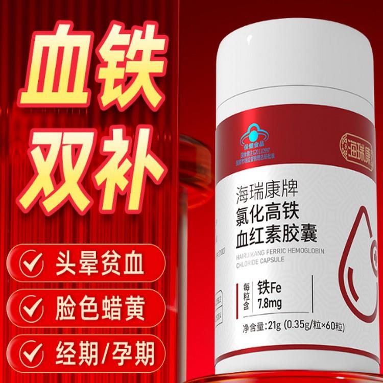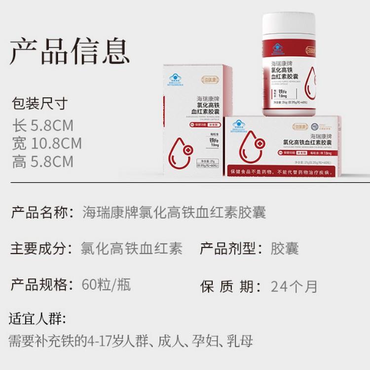 海瑞康牌氯化高铁血红素胶囊,专为需要补铁的人群打造。