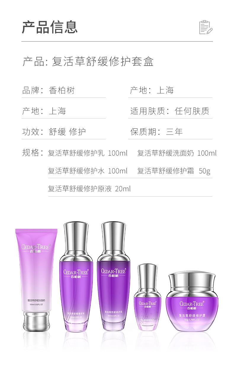 【包邮】T02香柏树复活草舒缓修护礼盒护肤品套装女保湿补水套装敏感肌5件套化妆品