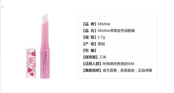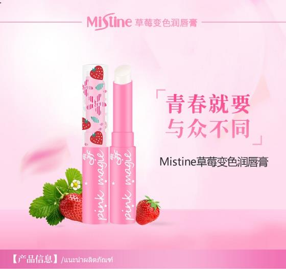 泰国正品Mistine草莓唇膏保湿滋润彩妆变色小草莓润唇膏