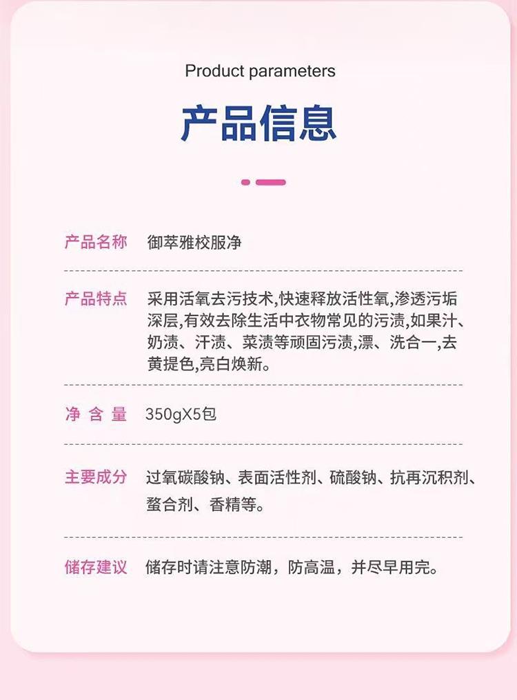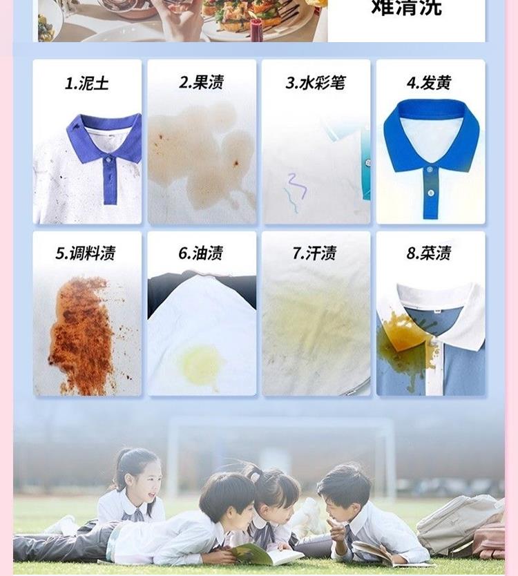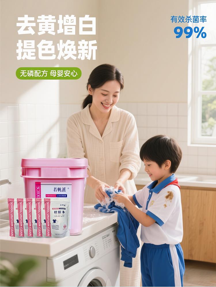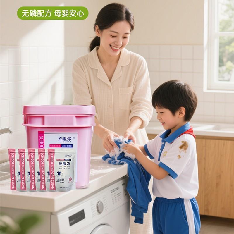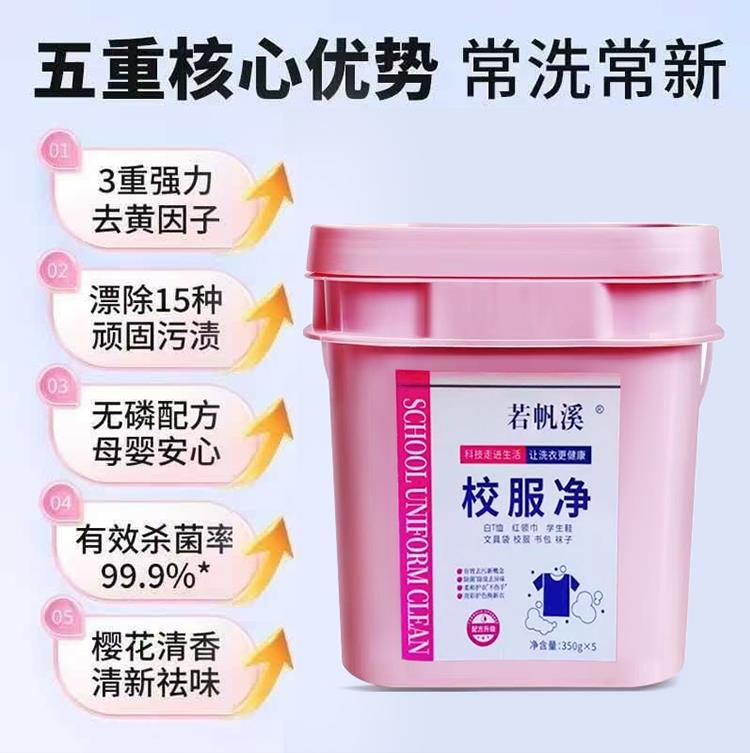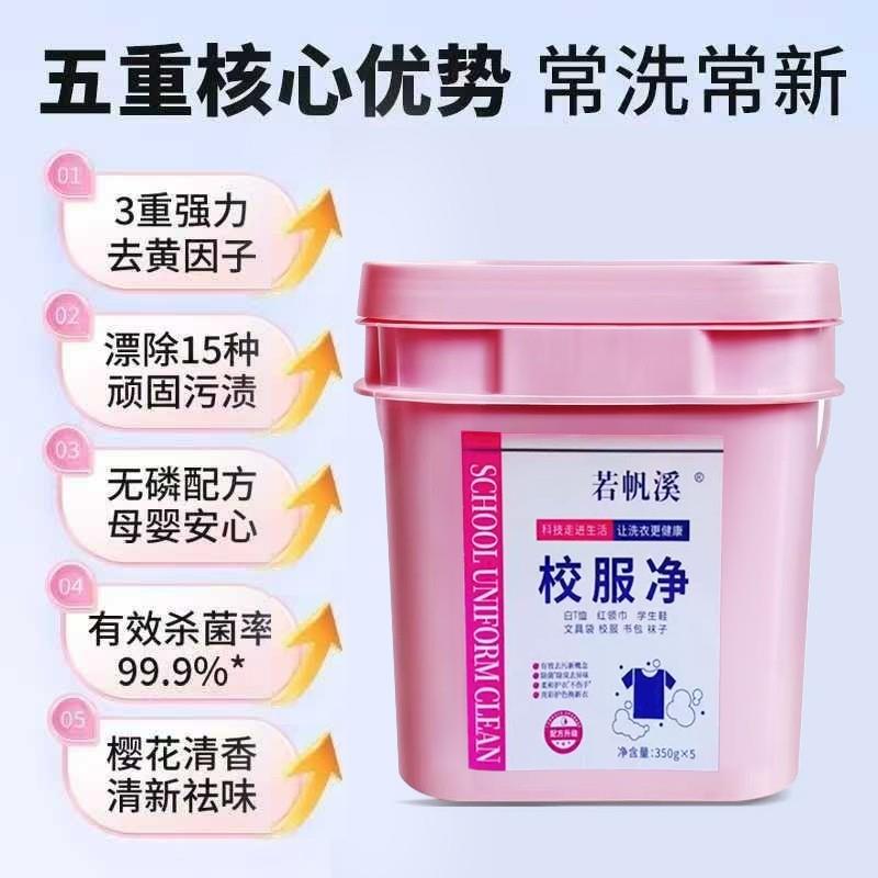若帆溪校服除臭强力强效亮色去渍去黄去污洁净柔顺洗衣粉去污神器1桶/5袋装