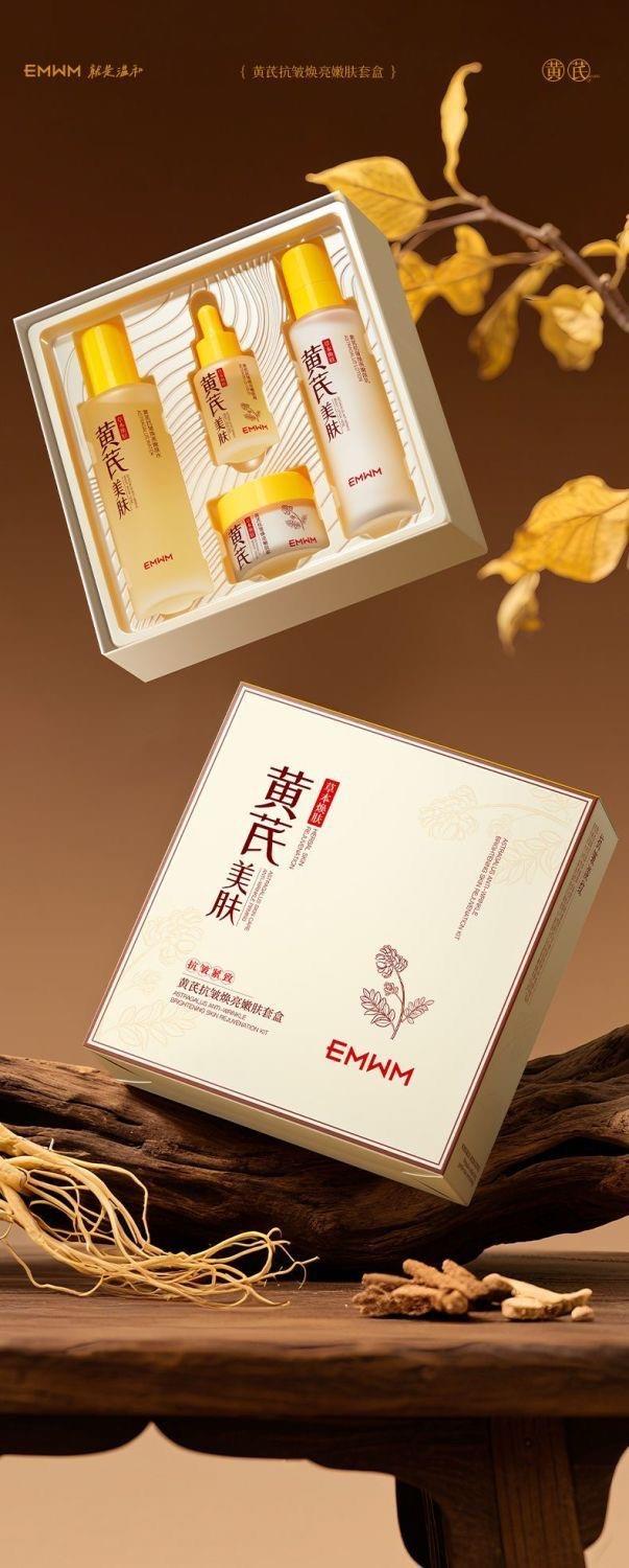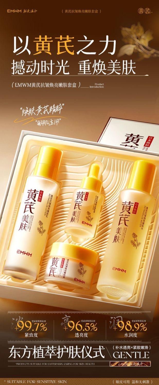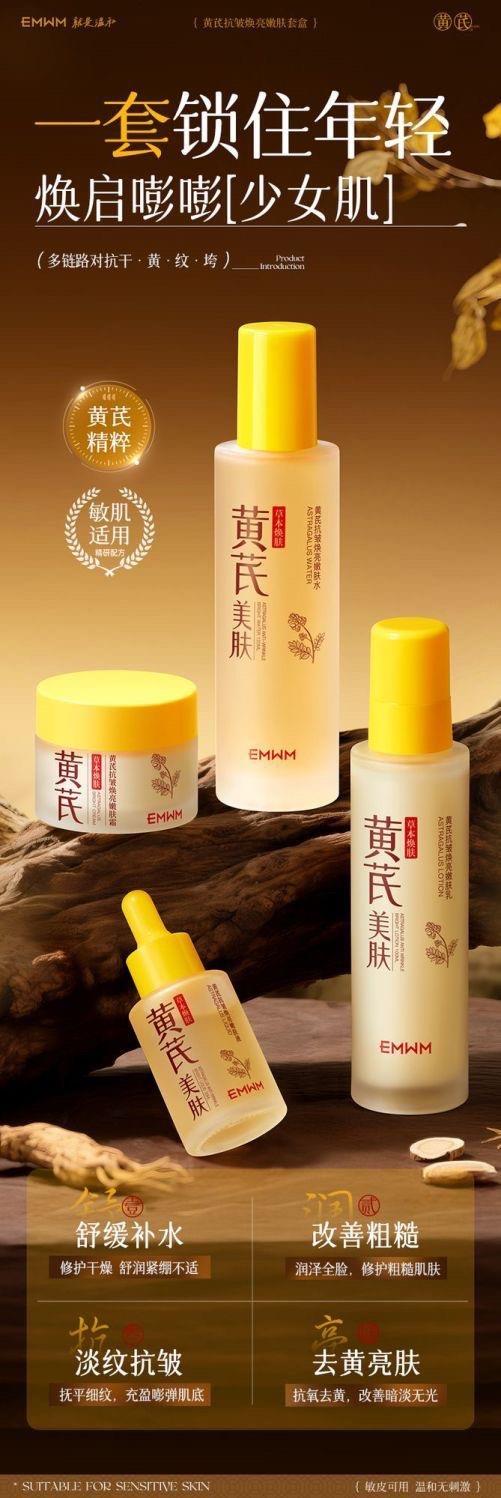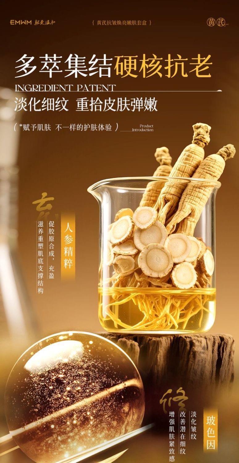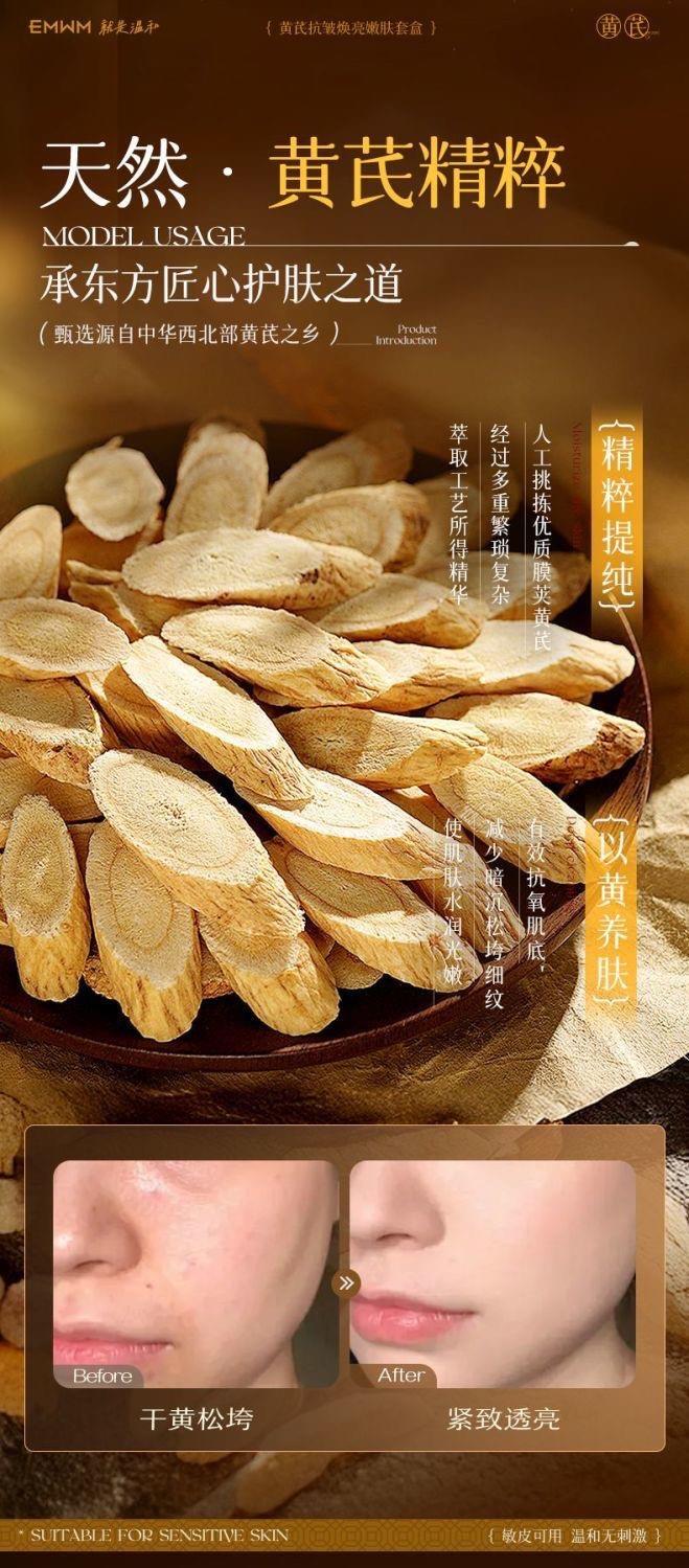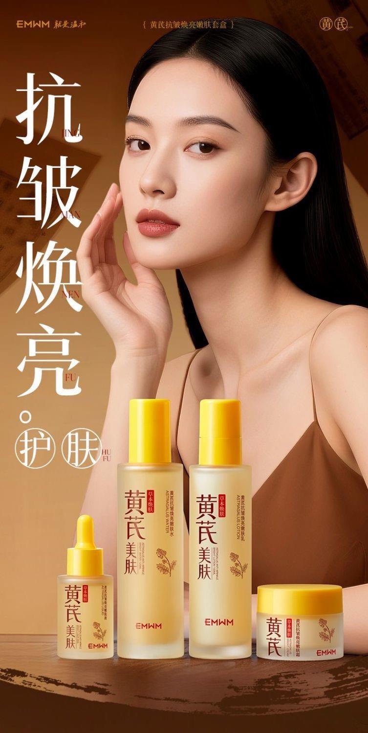 【超值】老牌国货黄芪护肤品四件套紧致抗皱去黄提亮保湿补水抗老水乳套装