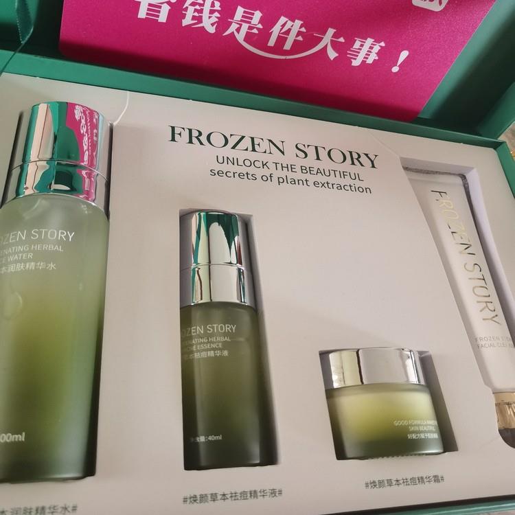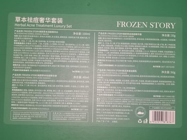 本套装包含焕颜草本润肤精华水、焕颜草本祛痘精华液、焕颜草本祛痘精华霜、柔润净澈洁面乳,从清洁到护理,构建完整祛痘护肤流程 。