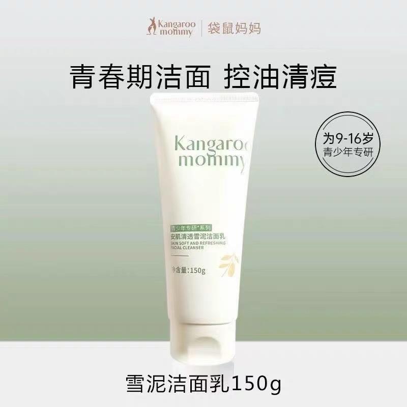 袋鼠妈妈安肌清透雪泥洁面乳150g青少年青春期肌肤清洁控油祛痘除螨护肤男女洗面奶【刮码发货 介意慎拍】