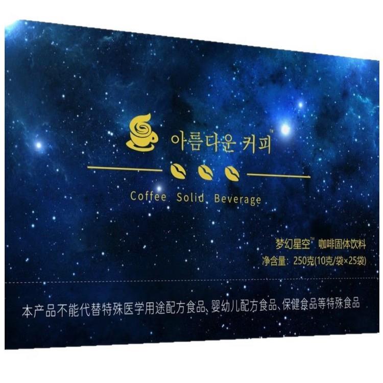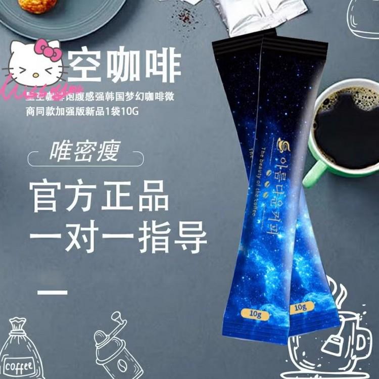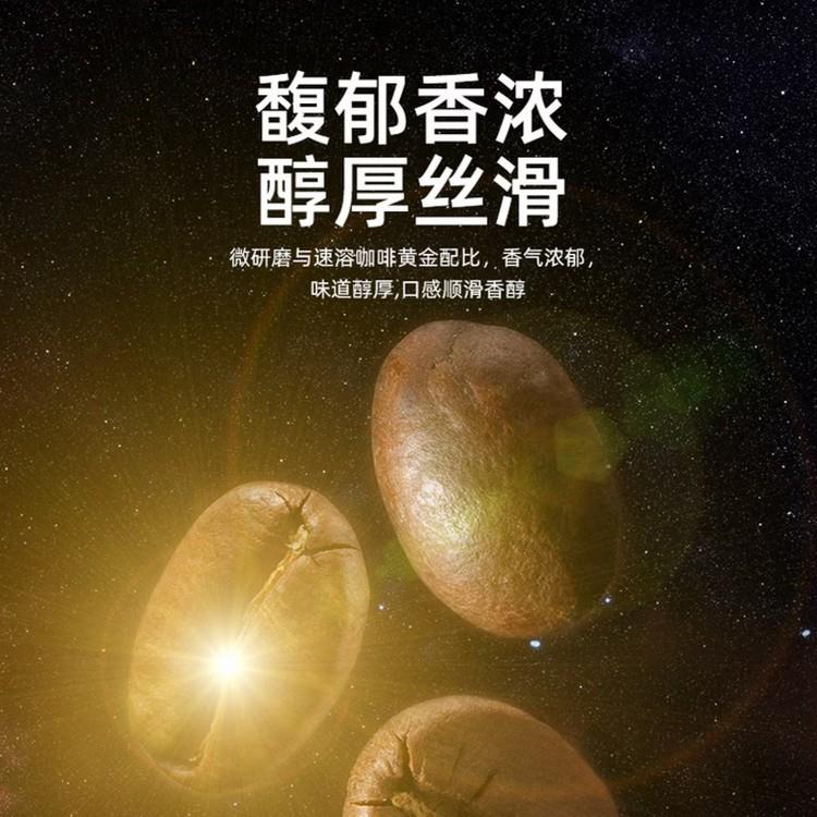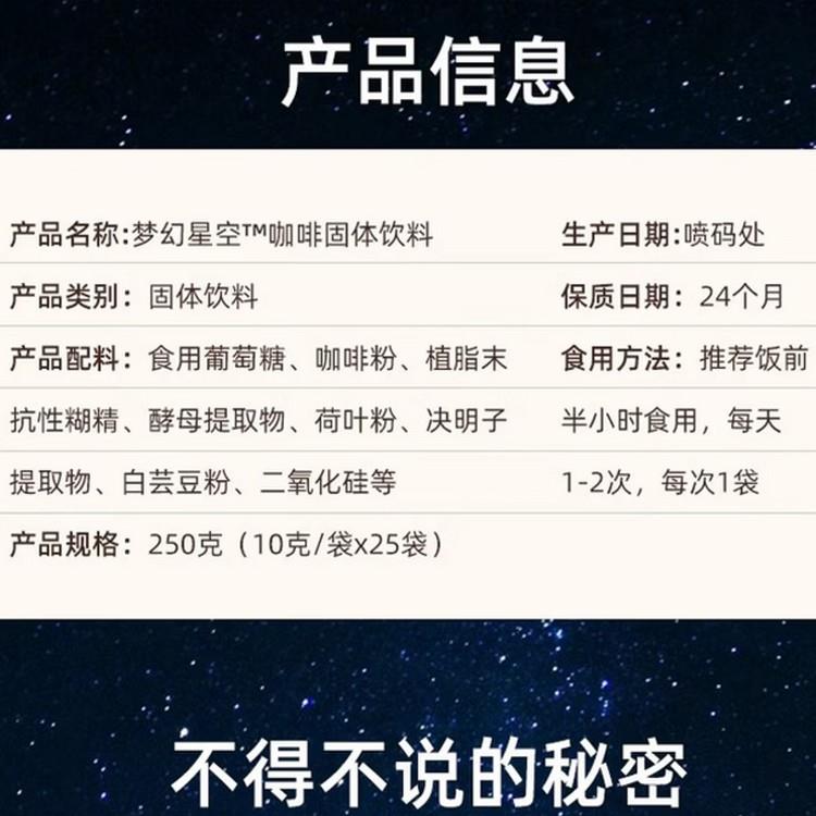 主打 “便捷 + 醇香 + 控饿” 的星空包装黑咖啡固体饮料: