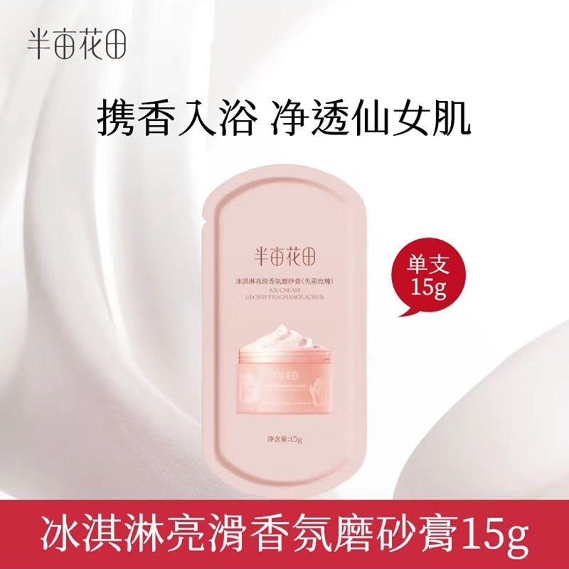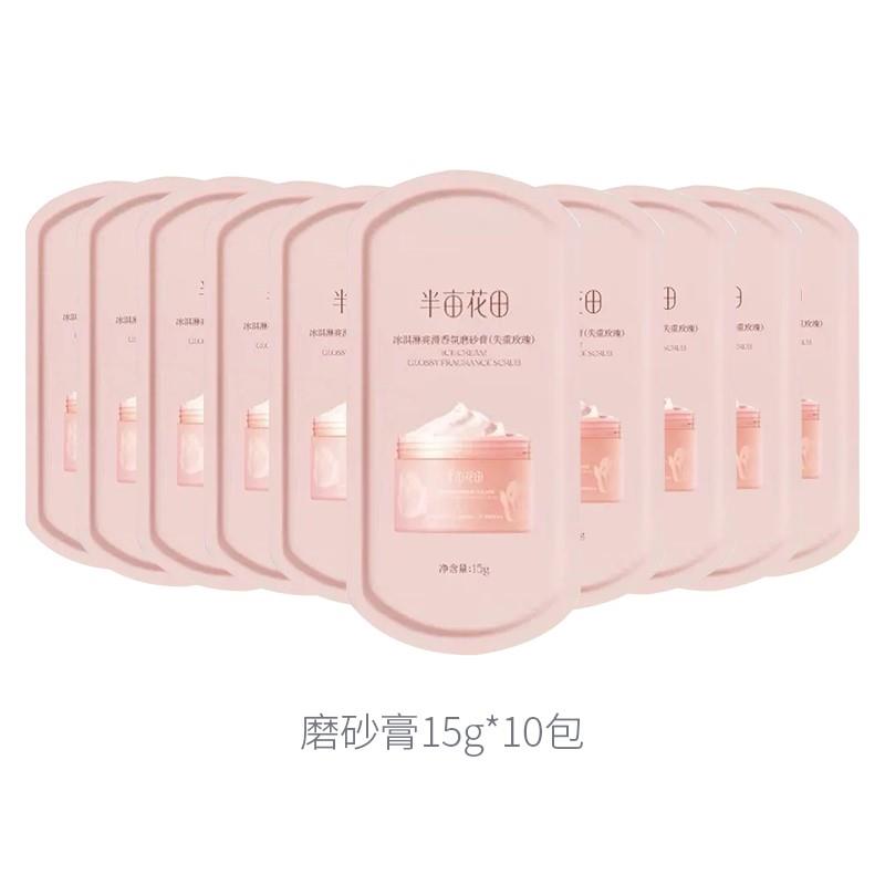 半亩花田冰淇淋亮滑香氛磨砂膏身体去角质玫瑰保湿滋润全身沐浴15g*10片