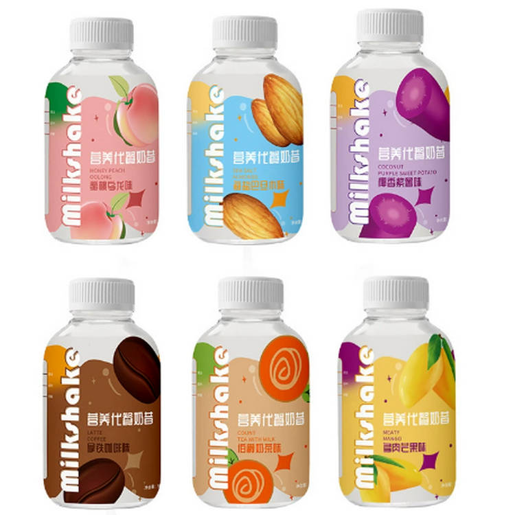 分别是蜜桃乌龙味、拿铁咖啡味、椰香紫薯味、海盐巴旦木味、伯爵奶茶味、多肉芒果味。