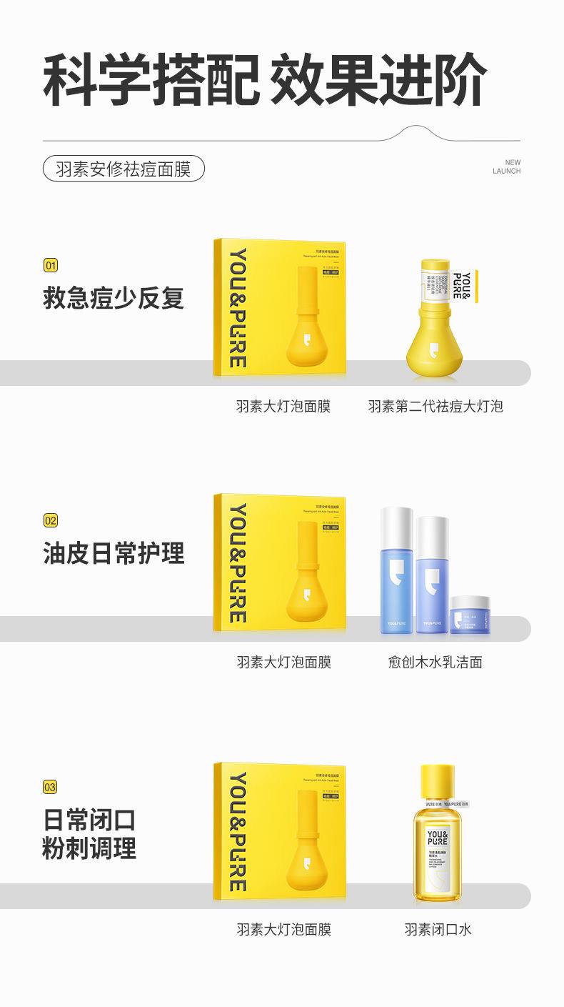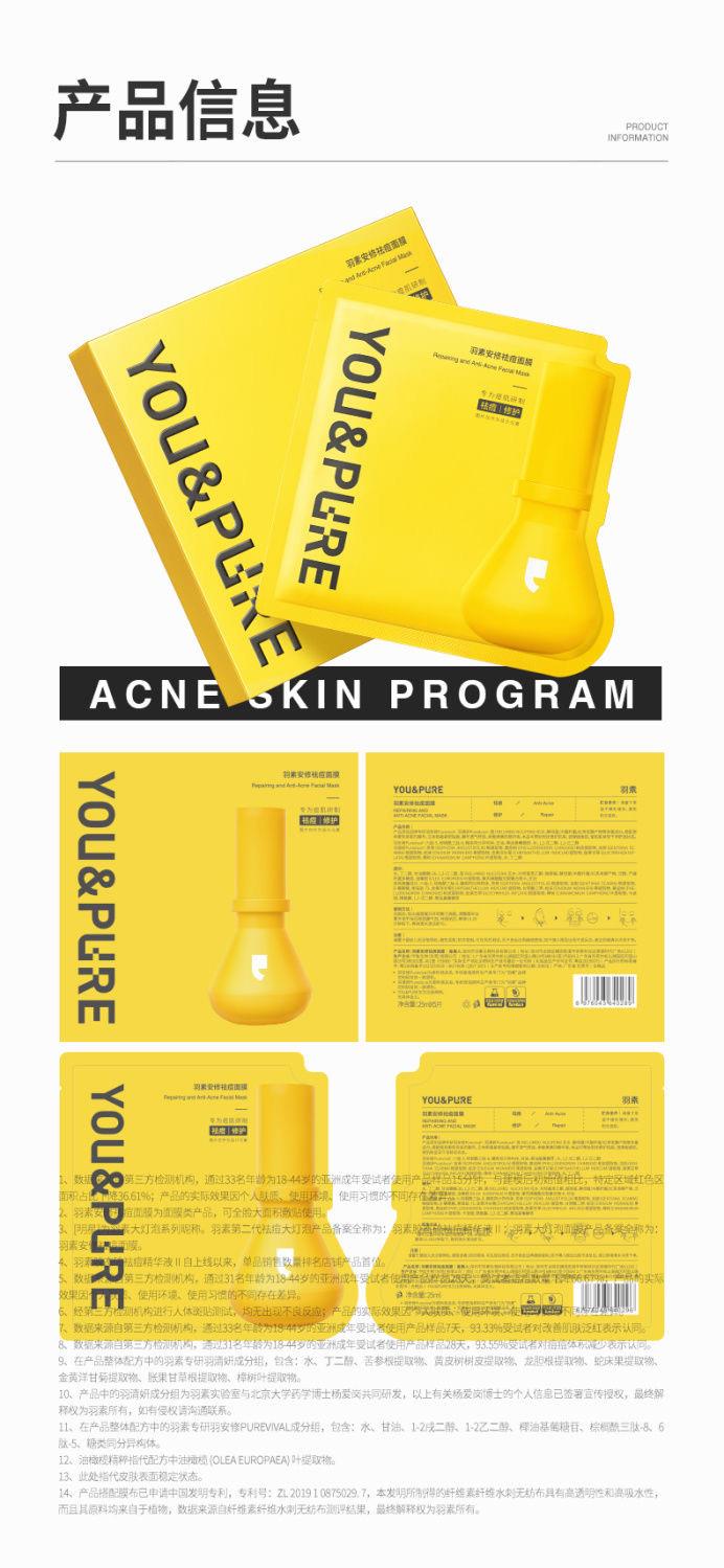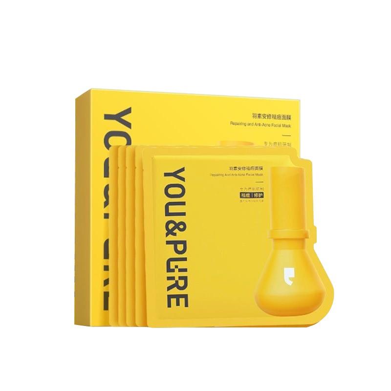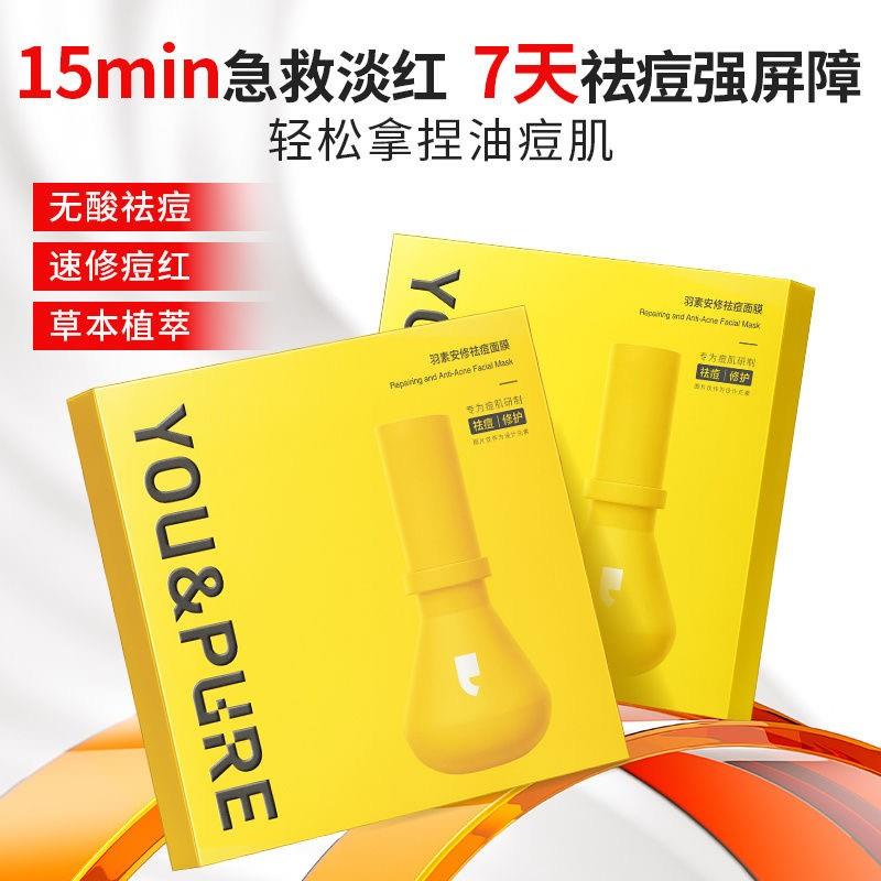 羽素安修大灯泡祛痘面膜补水保湿贴片面膜舒缓修护痘肌净全脸痘女5片装【刮码发货 介意慎拍】