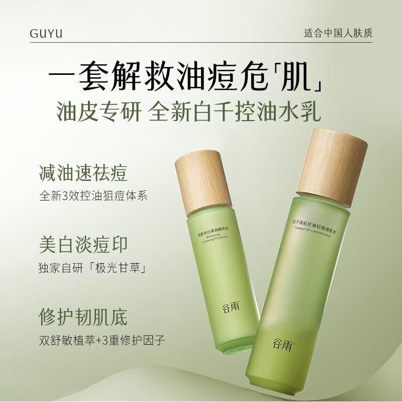 谷雨白千控油轻颜限定套装控油清洁 补水保湿 减少闭口【刮码发货 介意慎拍】