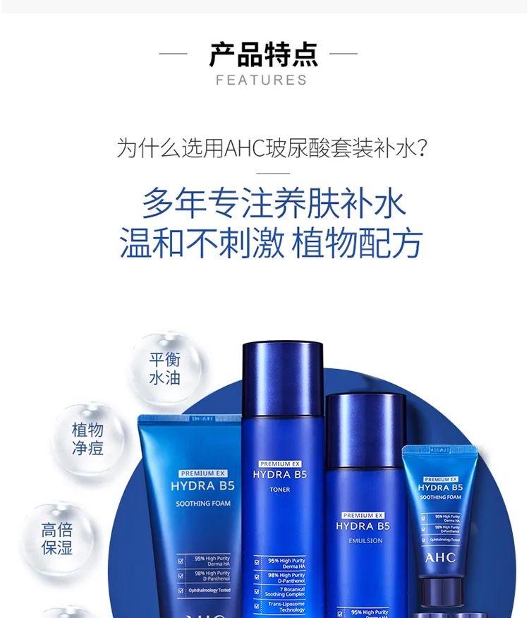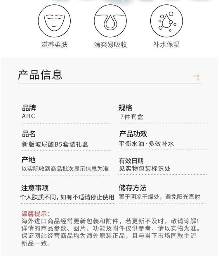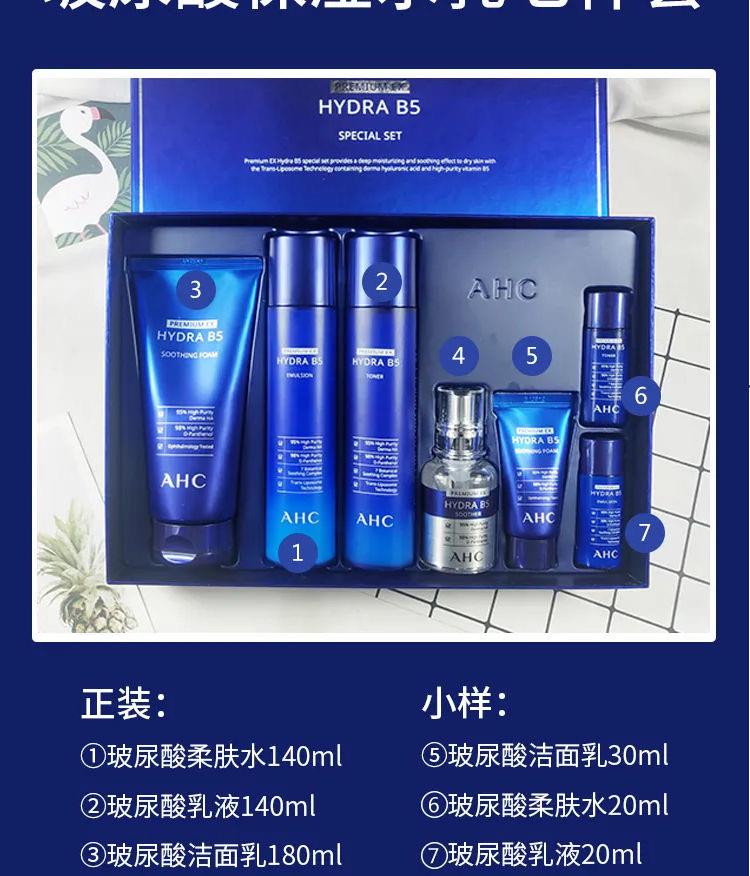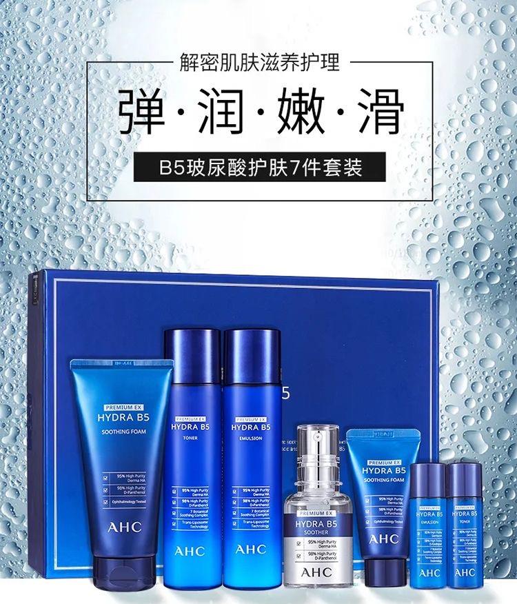 AHC/爱和纯 专研B5玻尿酸水盈补水7件套 护肤套装