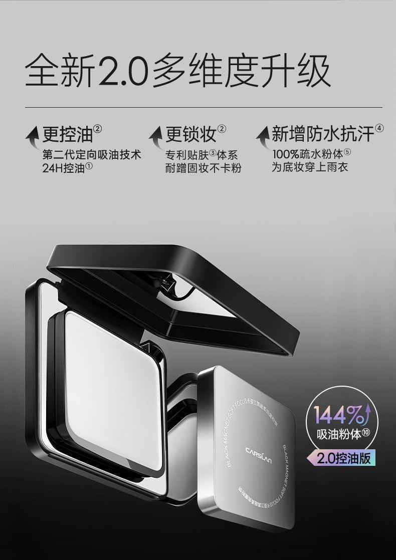 卡姿兰黑磁粉饼8g控油轻薄定妆持久防水防汗蜜粉2.0不易脱妆散粉1.0正品【刮码发货 介意慎拍】