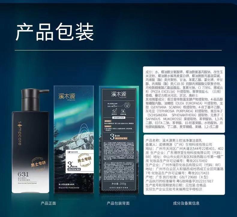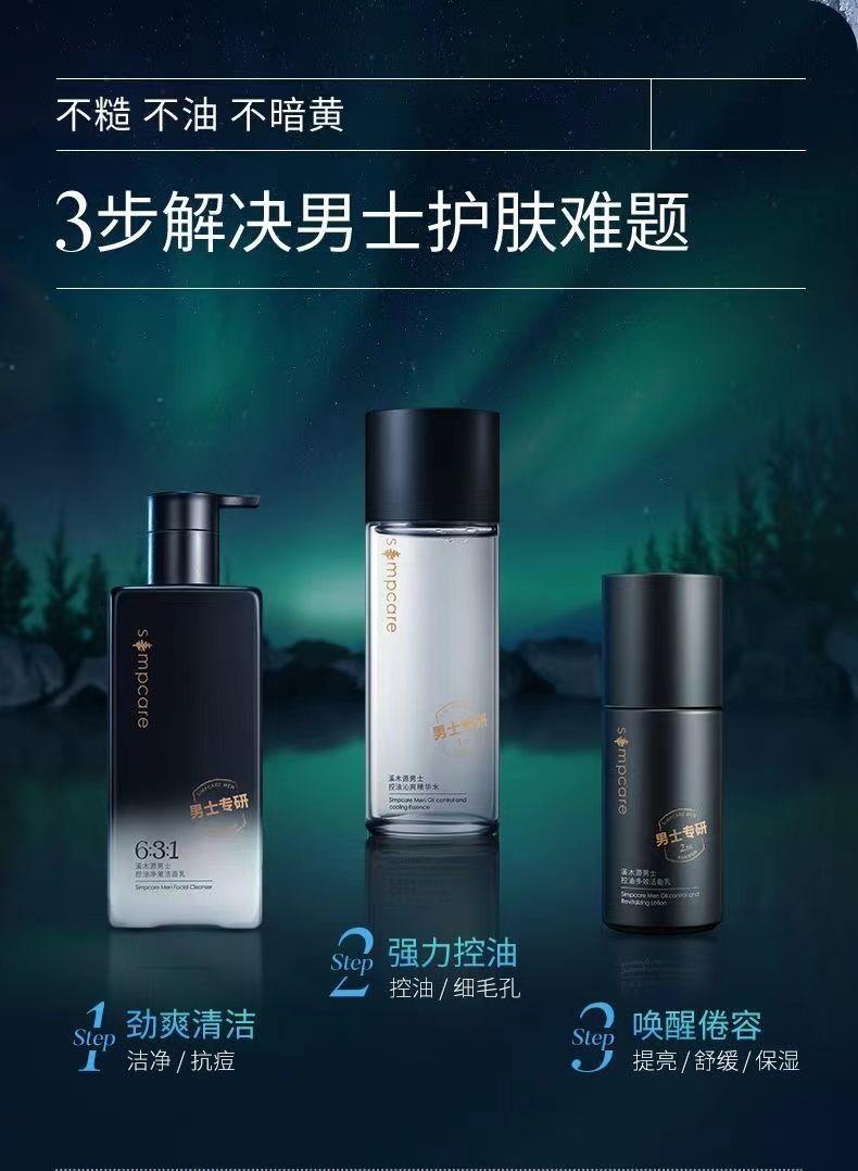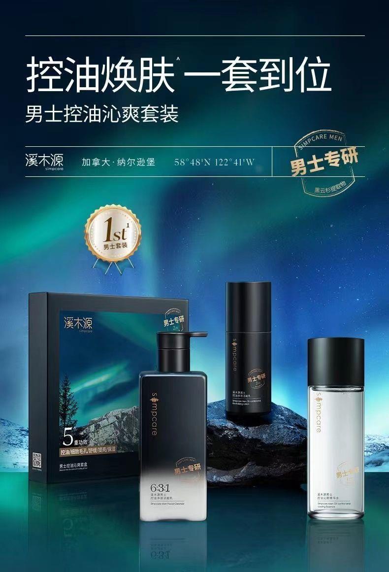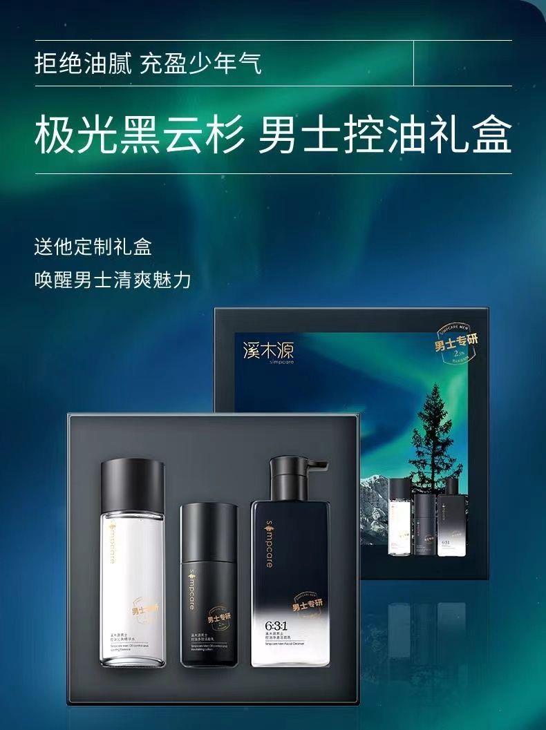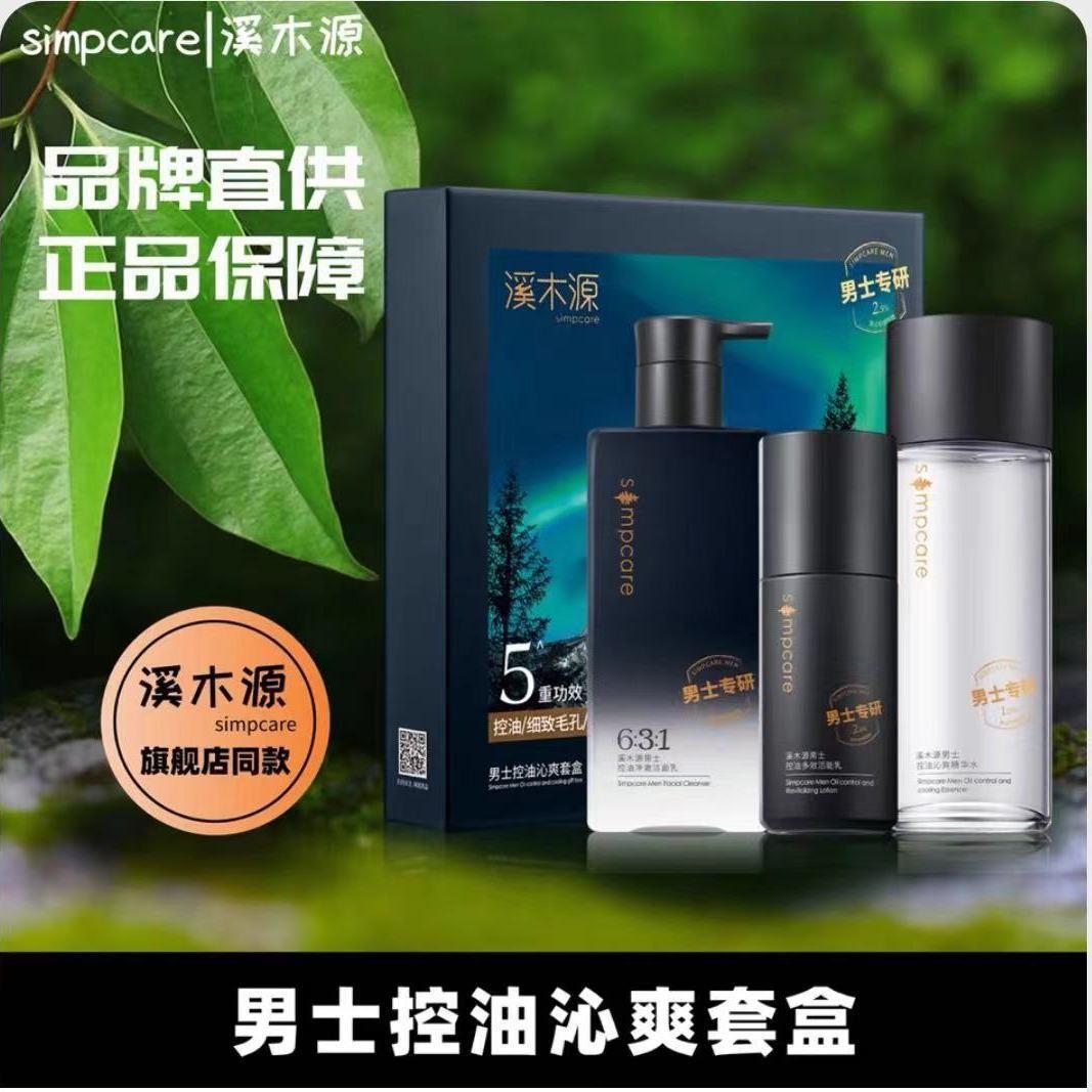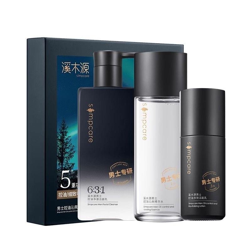 溪木源男士水乳洁三件套盒男士控油祛痘护肤套装男士护肤品补水男【刮码发货 介意慎拍】