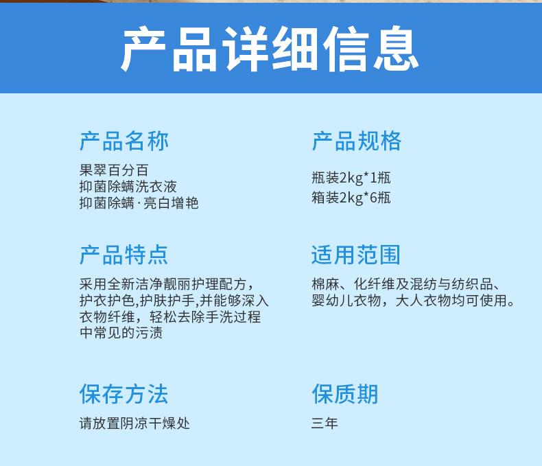 果翠百分百抑菌除螨亮白增艳洗衣液婴幼儿适用2KG/瓶