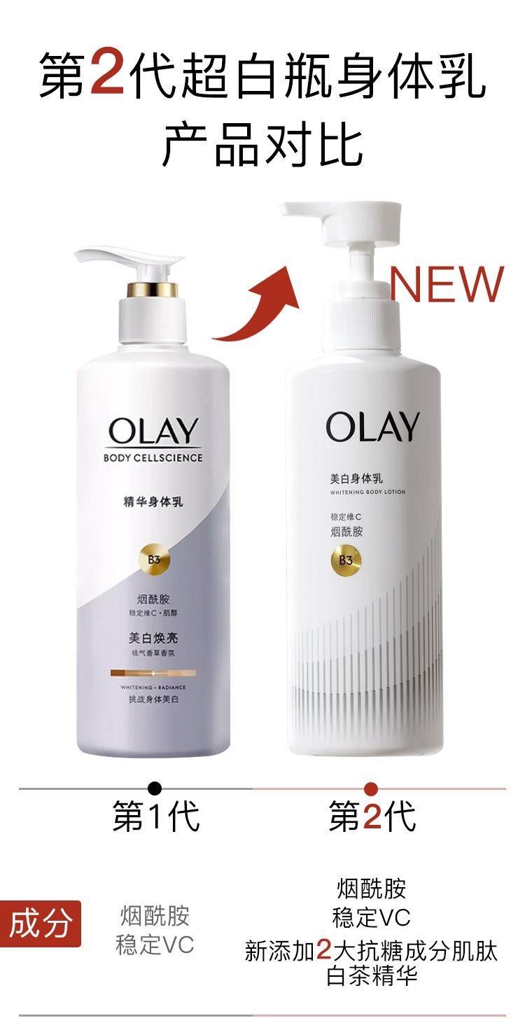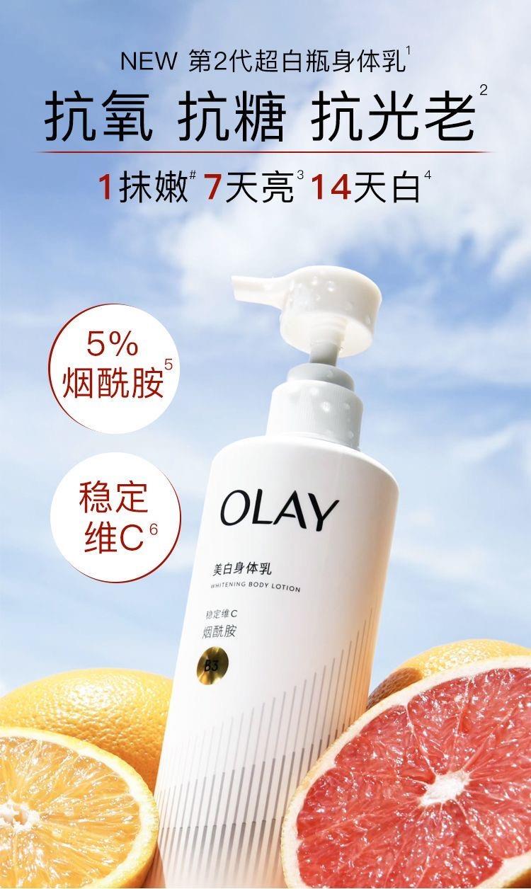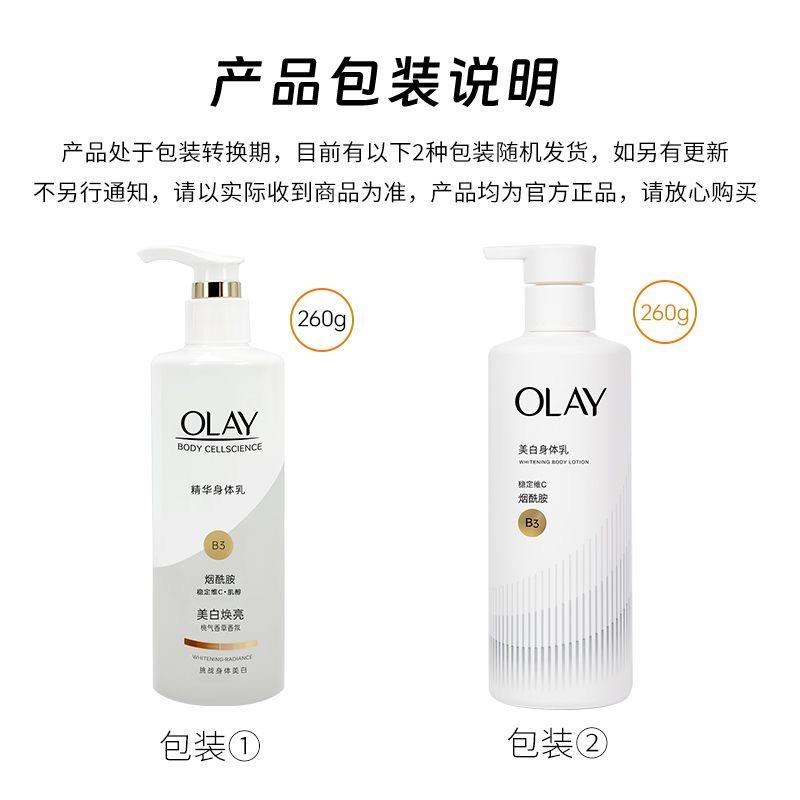 Olay美白焕亮精华身体乳三抗超白瓶身体乳二代美白保湿滋润烟酰胺精华润肤乳清爽香体260ml【新老随机发】
