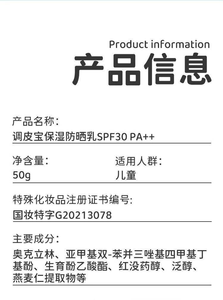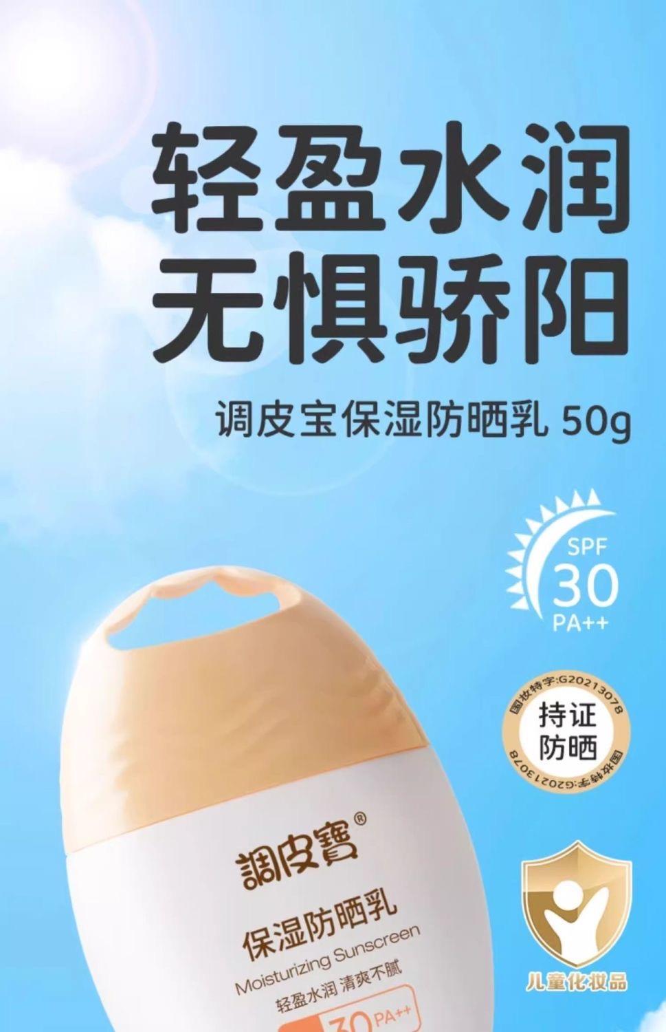 调皮宝防晒霜清爽保湿滋润儿童防晒乳宝宝户外防紫外线50g