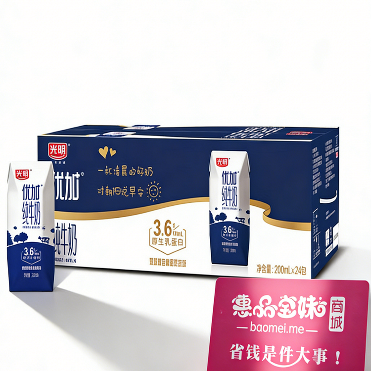 产品规格为 200ml×24 包 / 箱,配料仅生牛乳,采用超高温灭菌工艺,保质期 6 个月,