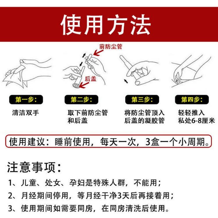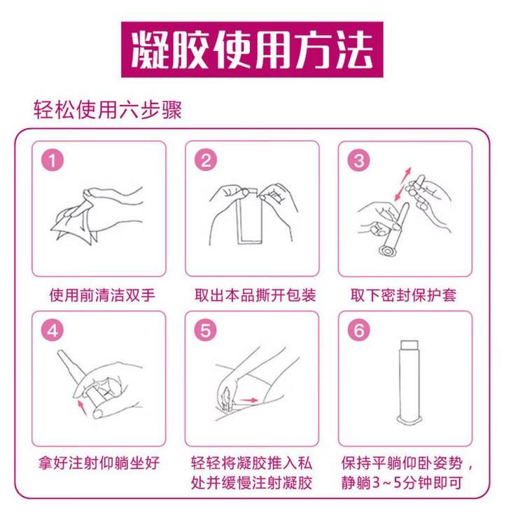 使用步骤:自然平卧,将凝胶缓慢推入阴道,保持 2-3 分钟让药物充分吸收;