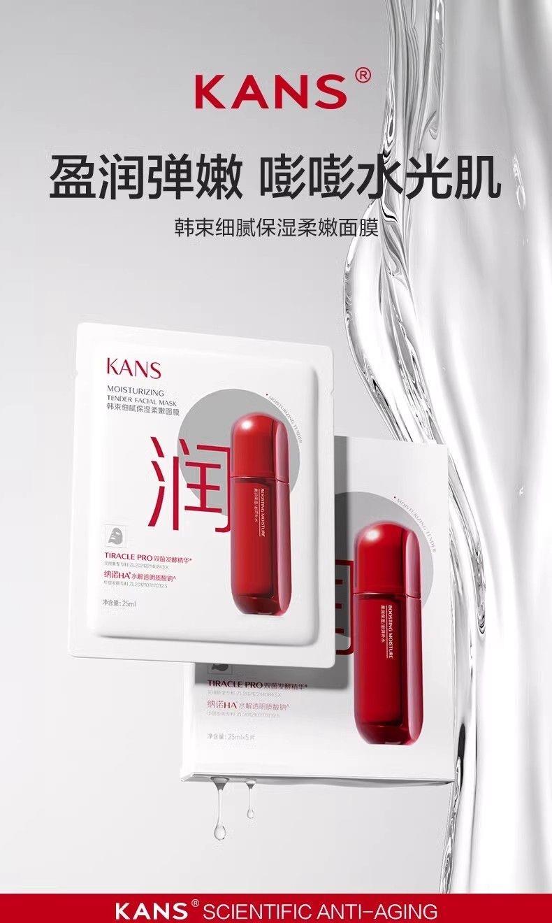 韩束红蛮腰细腻保湿弹嫩面膜补水滋润修护收缩毛孔提亮肤色面贴膜5片装