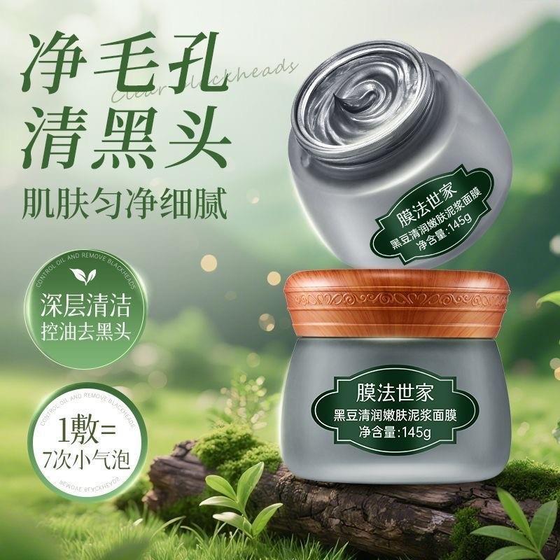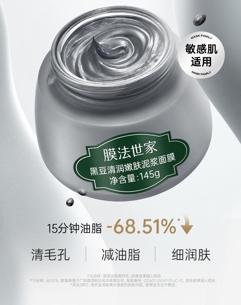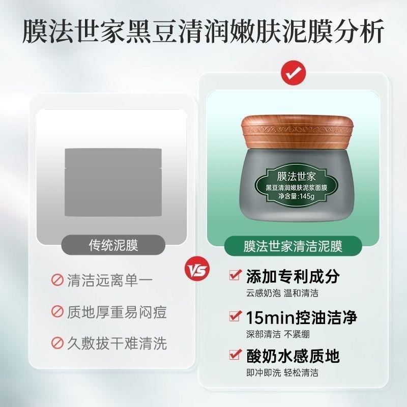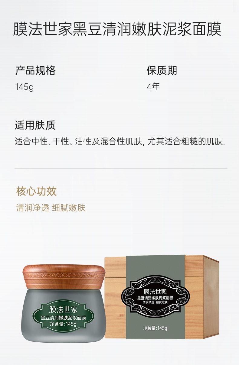 膜法世家黑豆清润嫩肤泥浆面膜深层补水控油保湿男女膜法世家清洁泥膜145g