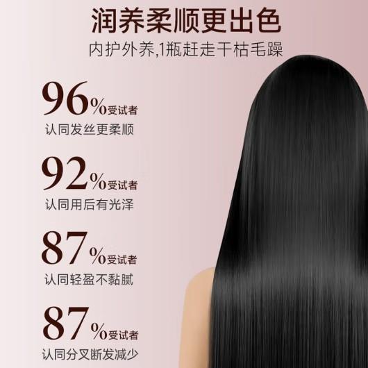不仅如此,它的吸收速度极快,不会给头发带来油腻感,让你的头发迅速变得顺滑,彻底告别毛躁。