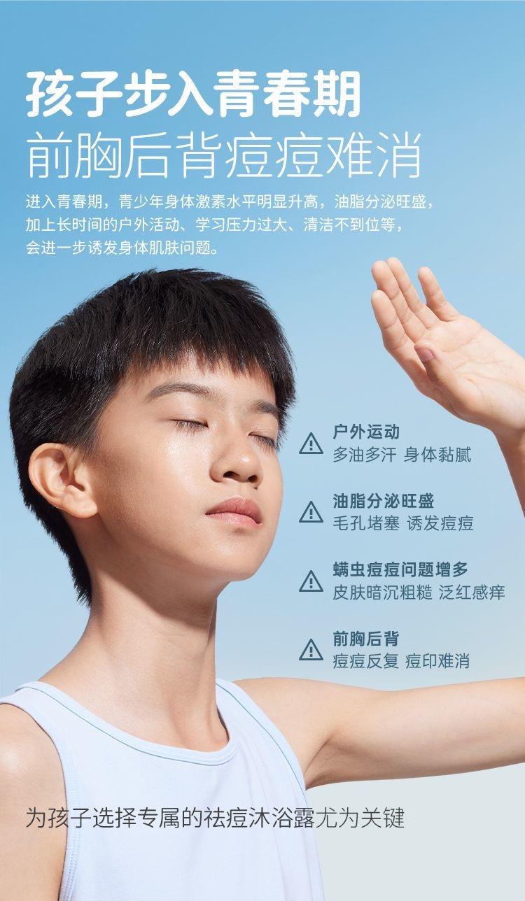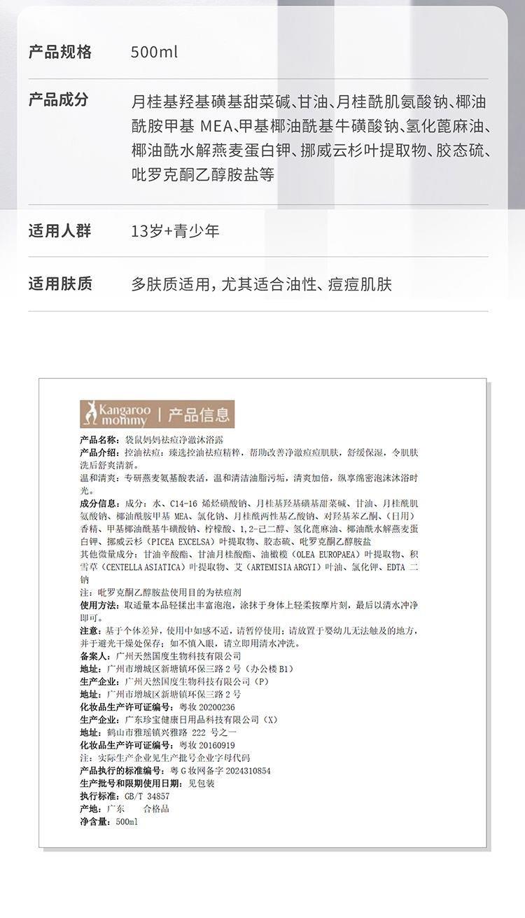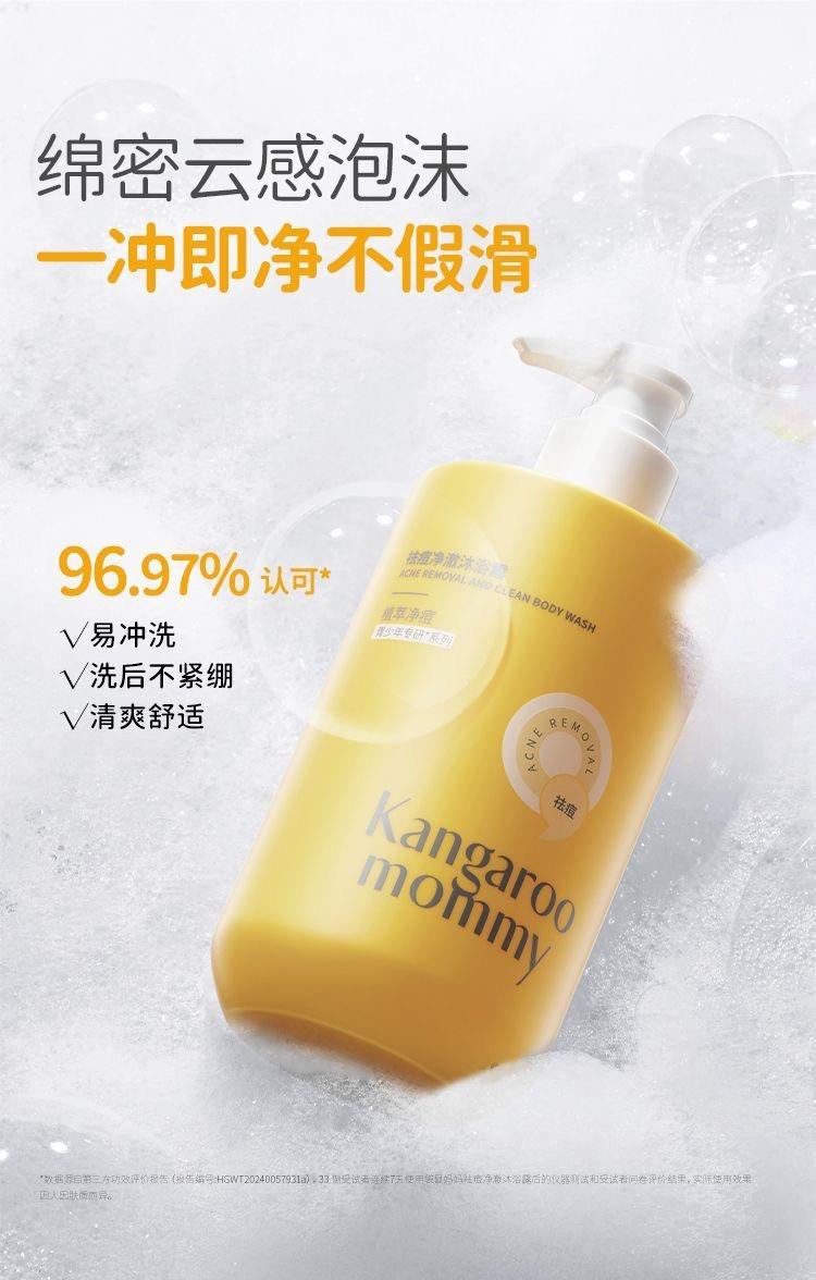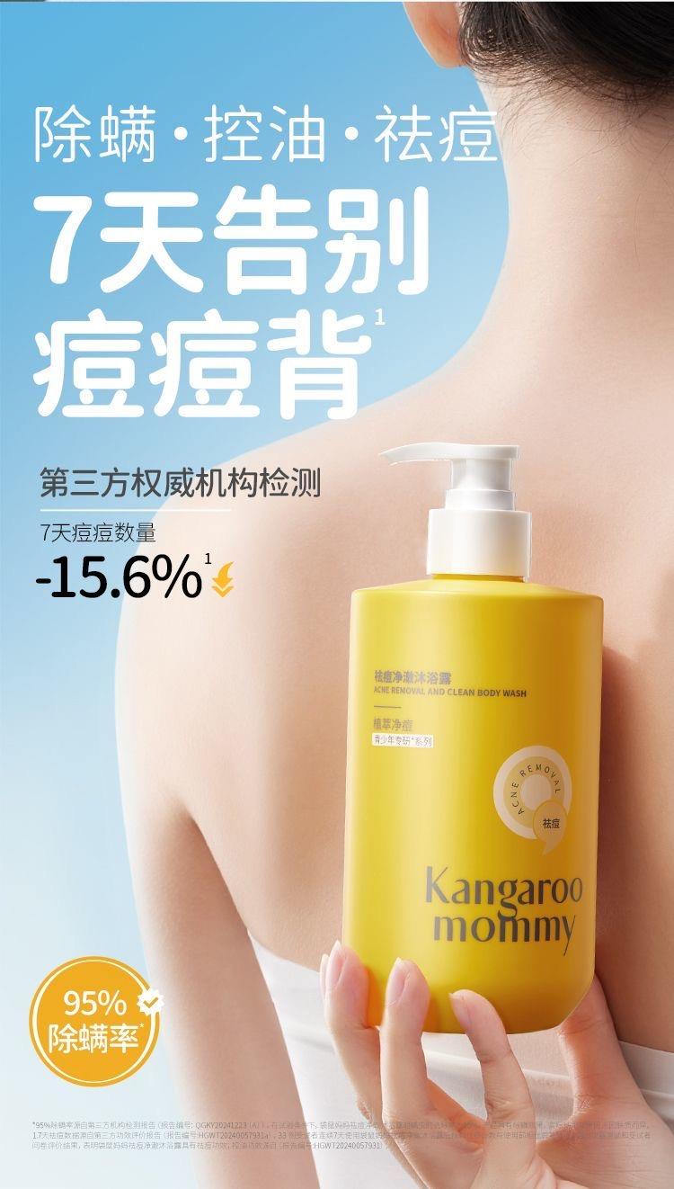 袋鼠妈妈500ml青少年祛痘净澈沐浴露学生清洁后背除螨保湿持久留香沐浴露【刮码发货 介意慎拍】